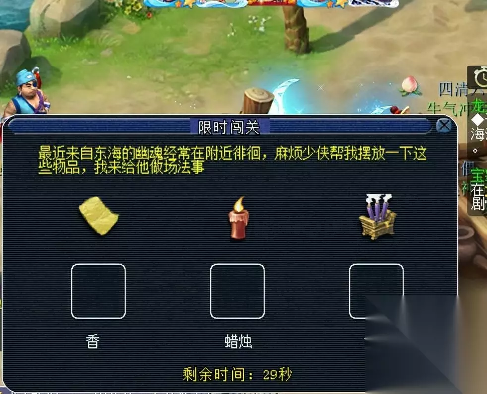 类型3:祭祀屈原大夫。根据NPC所给予的坐标,使用获得的道具兰花后,就可以通过。