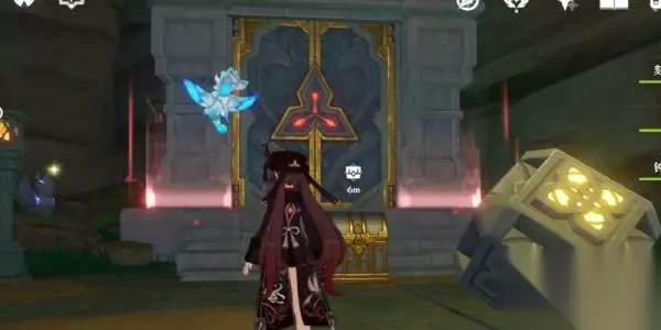 步骤五:解锁铁门 继续向右前方前进,打开第二个宝箱。然后返回到这个空间的初始位置,向左前方前进,以逆向旋转指针。这将改变第三个空间中门的状态,确保铁门被解锁,否则后续的进展将受到阻碍。