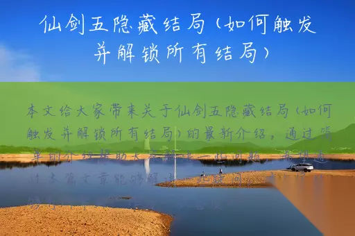 本文给大家带来关于仙剑五隐藏结局(如何触发并解锁所有结局)的最新介绍,通过简单的介绍帮助大家解决一些问题,希望通过本篇文章能够解决一些疑问,对大家能够有所帮助! 作为一款备受瞩目的RPG游戏,仙剑五自推出以来就备受玩家们的喜爱。除了精美的画面和引人入胜的剧情外,游戏中还隐藏着多种结局,这也是吸引玩家们不断探索的重要原因之一。但是,如何触发并解锁所有的仙剑五隐藏结局呢?下面就为大家详细介绍。