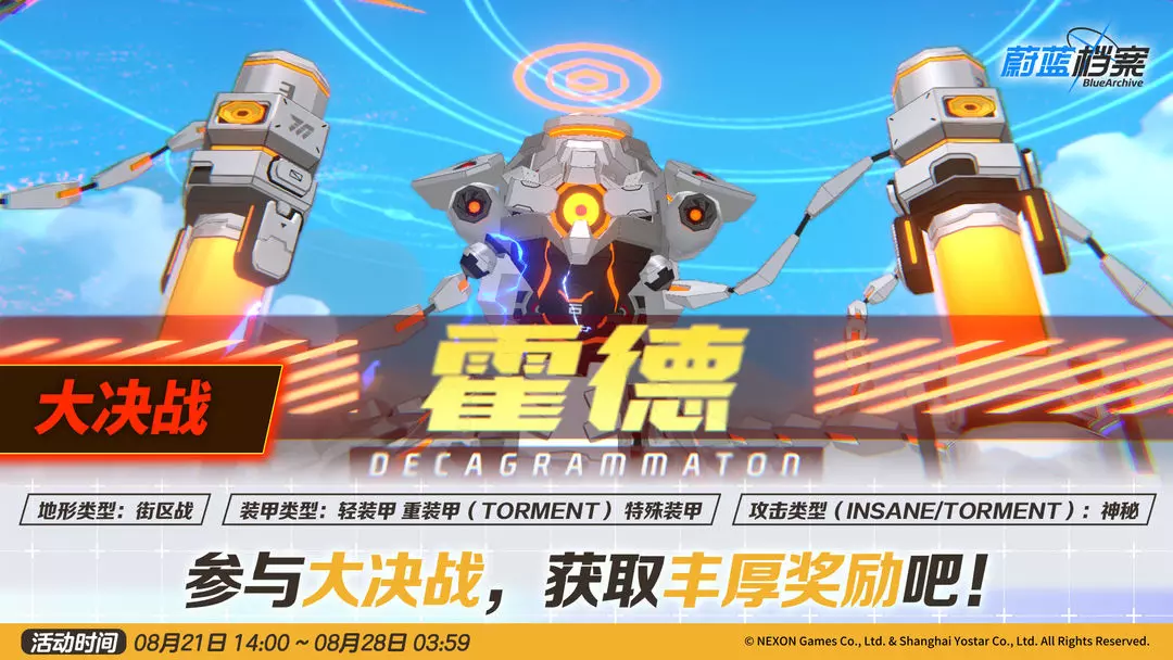 *大决战说明:霍德(重装甲)将开放NORMAL~TORMENT难度,其余两种防御类型的首领将仅开放至INSANE难度。