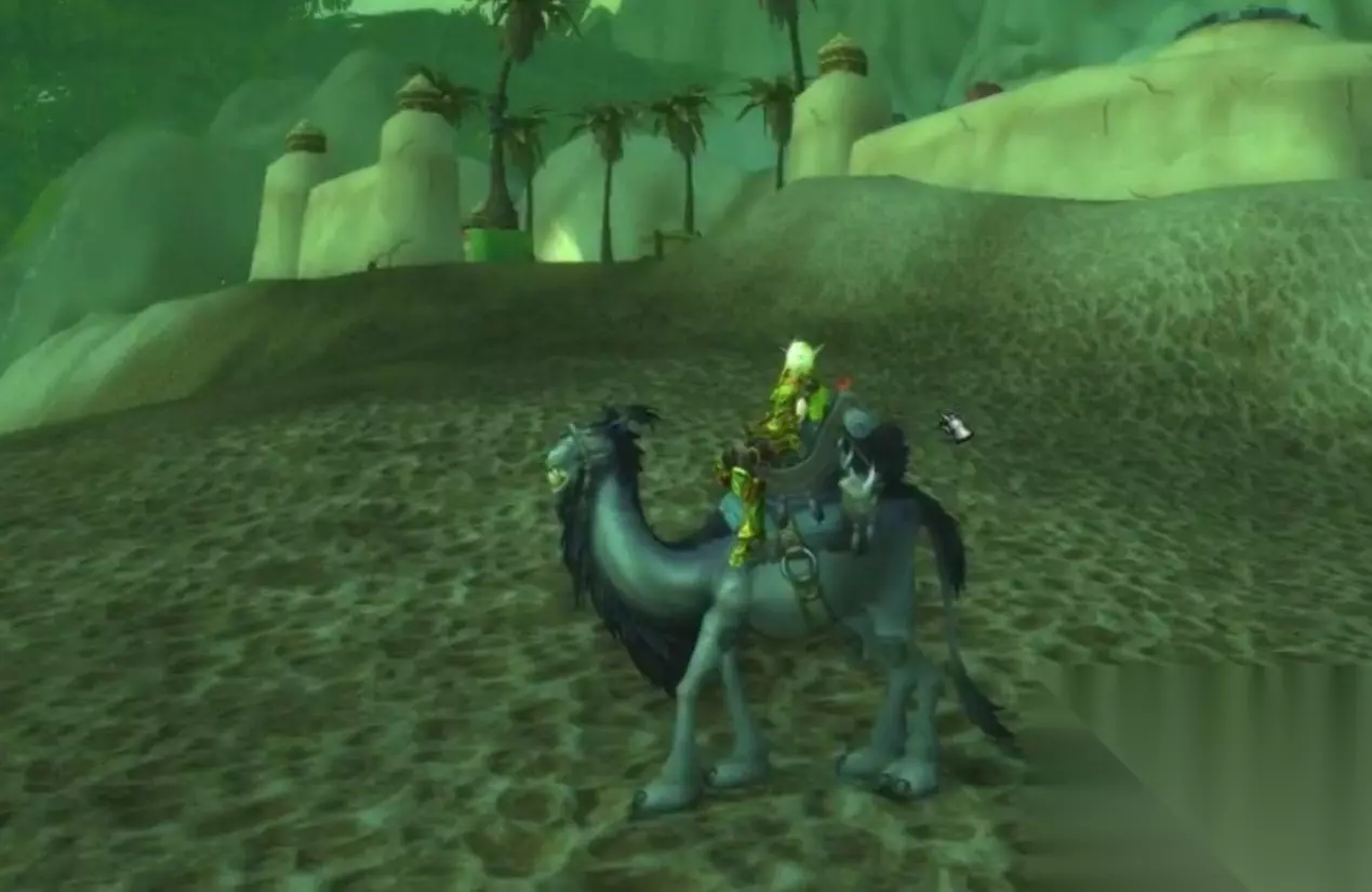 第四只:灰色骑乘骆驼,它虽然是点这个发光的雕像出来的,但是它也可以击杀稀有掉落,然后这个地图上会刷新这个发光的雕像,他有5%的几率把你送到这个稀有的地方,有95%的几率是一个灰色物品,你得等其他发光雕像,然后他这个刷新的范围非常大,在这个老的奥丹姆这个地方,在天上飞,慢慢找。