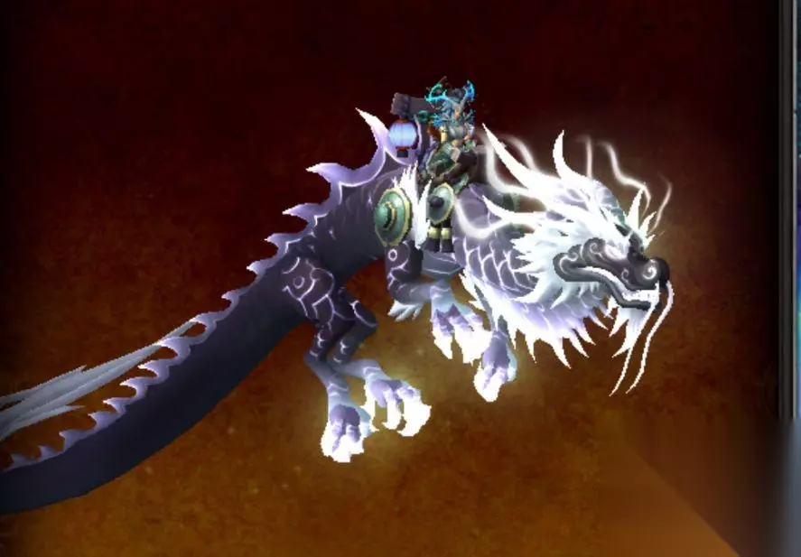 第八只:的话是这个昆莱山的世界boss怒之煞掉的这个神圣玛瑙云端翔龙,这个可以算得上是魔兽掉率最低最低的,有这个坐骑的人很少的。