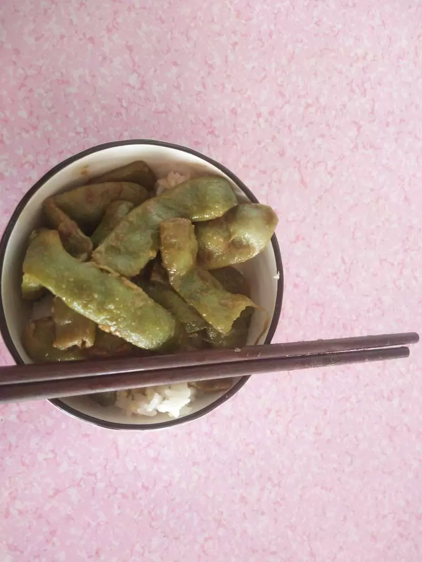 今日午餐豆角+酱油+米饭