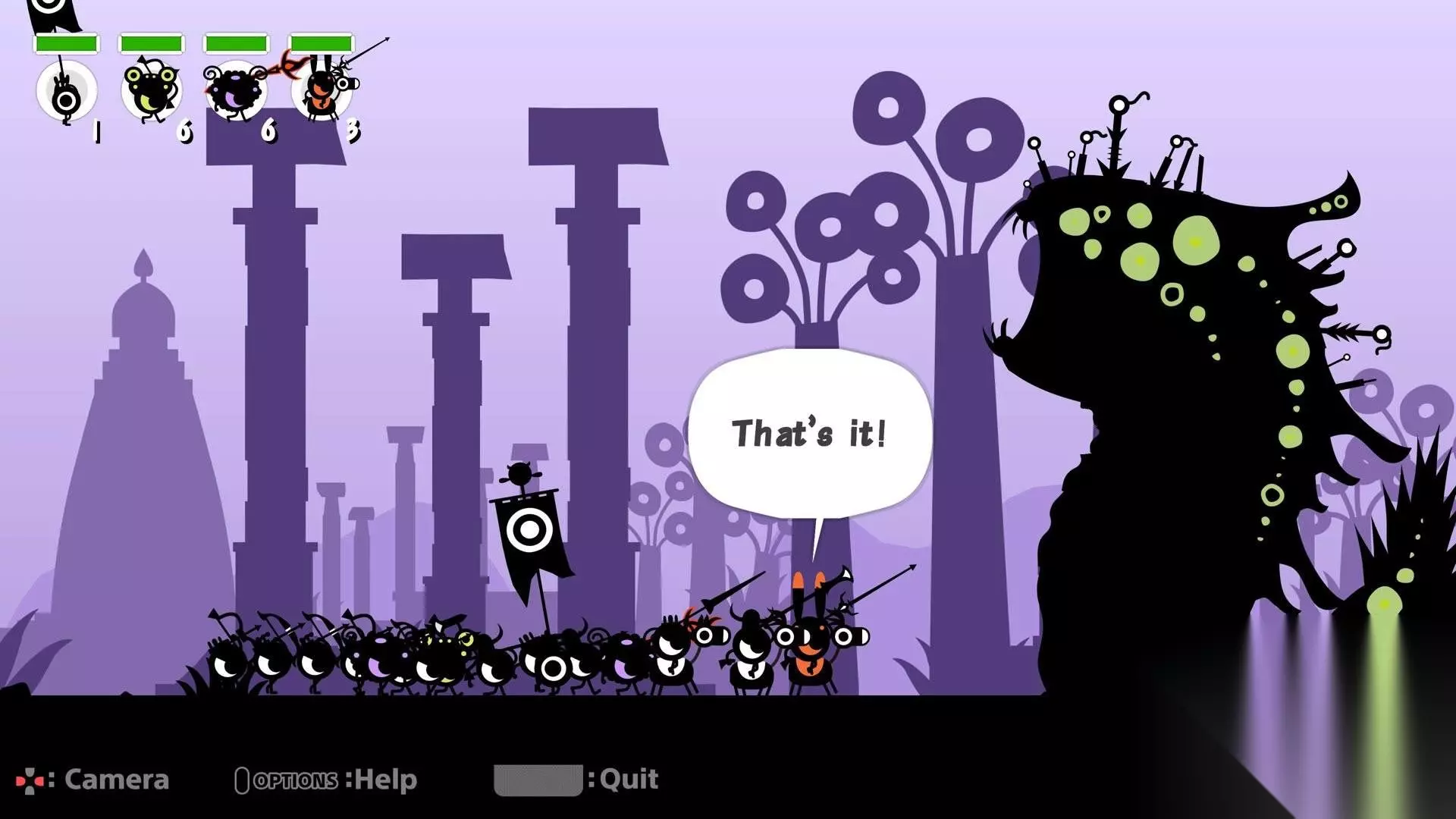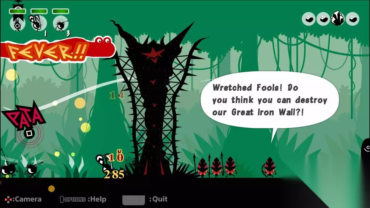如今音游已经普遍发展为《DJMAX》《节奏大师》这种下落方块类型的游戏,像《啪嗒砰》系列如此有创意的精品音游可谓是少之又少。然而在种种意义上,《啪嗒砰》系列已经脱离了音游的范畴,反而更像是前文提到过的,是一款"音乐节拍型RPG游戏",收集材料招募新的啪嗒砰战士,获取更好的武器装备也是这个游戏的玩点之一。巧妙的关卡设计、可爱的角色塑造、洗脑的BGM与节奏,都使《啪嗒砰》系列成为玩家们的时间粉碎机,极大程度上的增强了游戏的耐玩性。系列迄今为止已经出过三部游戏了,其中初代《啪嗒砰》如今也可以在PS4平台上玩到高清重制版,第二部官方也表明会在今年登录索尼PS4平台,并且以4K高清的方式献给玩家。