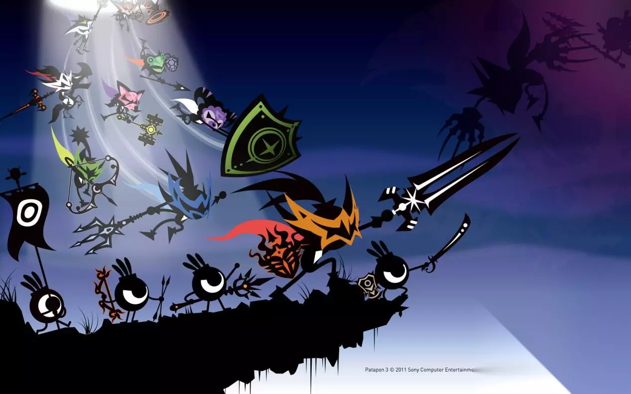 PATA、PATA、PATA、PON......这只是个普通的节奏,不过在游戏界,这是一个非常大的创意。将音乐游戏的节奏元素和战斗完美结合是《啪嗒砰》的创意之举。本作出自SCE之手,可爱的画风,特色鲜明的角色,还有剪影效果,《啪嗒砰》并不是一款单纯的音乐游戏,玩家需要利用"△OX口"这四个按键,按照音乐的节拍操作啪嗒砰们完成各种指令。 为了壮大啪嗒砰的队伍,玩家需要利用讨伐BOSS和任务得到的战利品制作新的啪嗒砰,发掘更强大的兵种。啪嗒砰穿上不同的装备会有各自的属性,不同的兵种应对不同的敌人,所以玩家在战斗的时候,需要合理地安排出战的部队,是用远程部队攻击,还是用近身部队攻击,是防守还是出击,这些都要仔细琢磨,所以游戏也非常具有战略性。