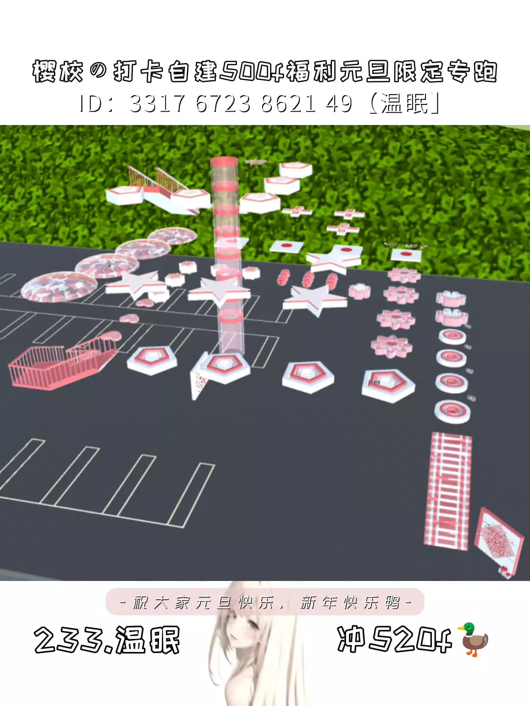 然后就是,我放在游乐园的电影院的屋顶了,希望大家都可以去打卡。我下一期还会用转盘决定做跑酷给樱校圈友,但还是要看情况。