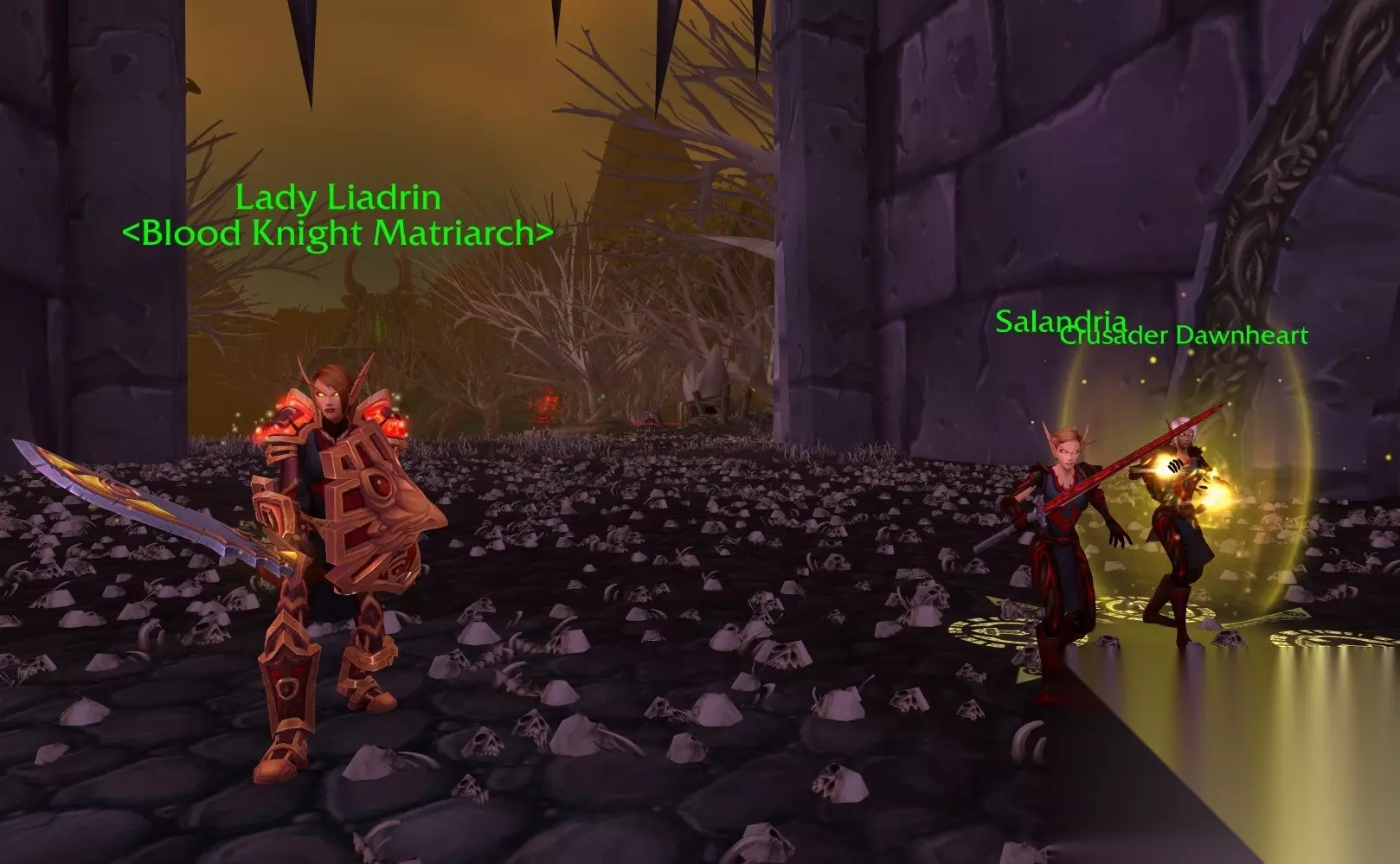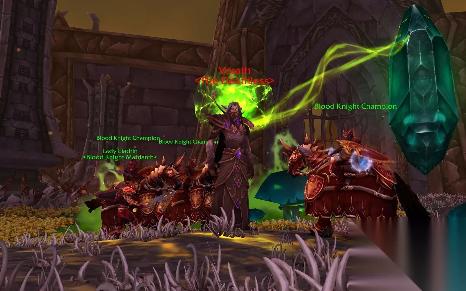 为了引出控制天灾的幕后主使,莉亚德琳要求“脚男”尽可能地消灭天灾,然后在周围建造防护结界,一步步地找出最终BOSS。 在建立结界的时候,果然出现了控制天灾的幕后黑手,就是血领主沃拉斯,这是来自被阿尔萨斯复活的血精灵“萨莱茵”。沃拉斯企图打断结界的建立,但都被玩家击败,奇怪的是每次消灭沃拉斯,他都会很快复活,并且一直循环,根本无法真正消灭这个萨莱茵。