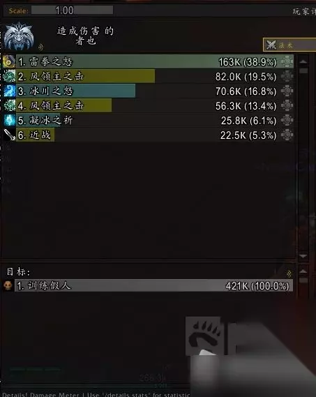 可以看到,攻击速度有明显的区别。 测试通过攻击祖达萨的4目标木桩累积层数。 随后根据出伤的速度及总体伤害来进行判定。 通过直接攻击木桩可以看到,两者之间使用雷霆之拳的总体伤害差距些微(些微差距可能来自附魔,双手没有上附魔) 双手武器