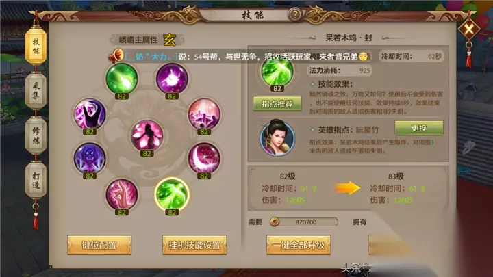 橙色暗器技能——目眩 暗器技能的第二排技能可以洗出目眩技能,目眩技能能使得失明持续时间增加,橙色目眩技能可以使得失明时间提升25%。峨眉少侠如果有了目眩,就可以使用一套失明技,让敌人连续失明16秒以上。私以为峨眉除了暗器第三排技能洗出自赏为第一优先级外,排名第二优先级的暗器技能就是目眩。