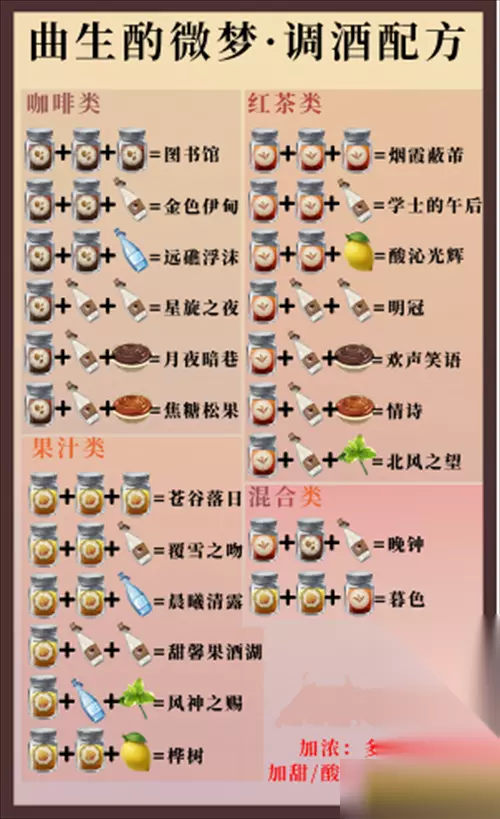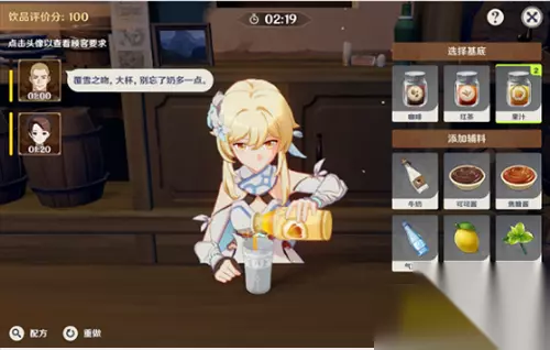 酒保挑战 酒保挑战需要旅行者根据客人的要求加浓,加甜或者多加牛奶/柠檬/气泡水! 每成功调配一杯饮品即可获得100分,达到500分就可以拿全奖励啦~ 注:旅行者们一定要注意客人们的需求和时间限制哦~在配方完成的同时下,不要忘记客人们所需要添加的东西哦!