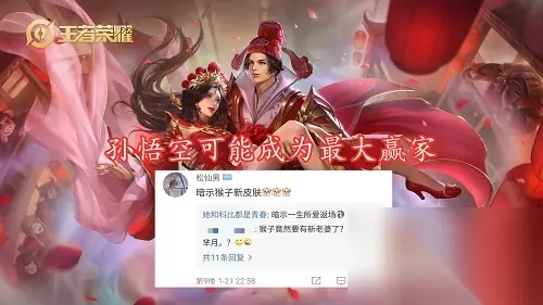 孙悟空有望第三款情侣皮肤 那么由于芈月拿到了白晶晶的联动皮肤,所以孙悟空有望拿下第三款情侣皮肤真就不是说着玩的,毕竟在《大话西游》这个作品里面,孙悟空跟白晶晶可是关系很深的,因为白晶晶可是孙悟空的女友。而女友出现在了游戏里面,孙悟空必定是会有些关联的,那么出一款跟白晶晶相等的情侣皮肤,就是最好的联系。