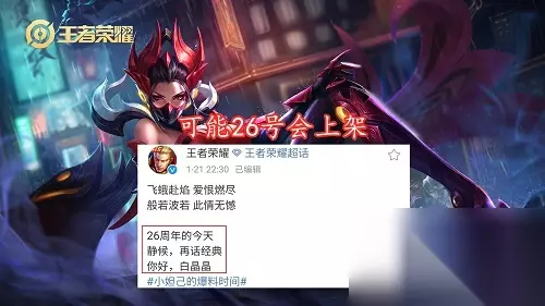 结语 芈月这款联动皮肤,按照官方公布出来的字面意思和海报里面隐藏的内容来看,极大可能会在26号就进行上线,毕竟26号对应26周年的数字,况且26号还是在周二这天官方常驻更新时间段里面。