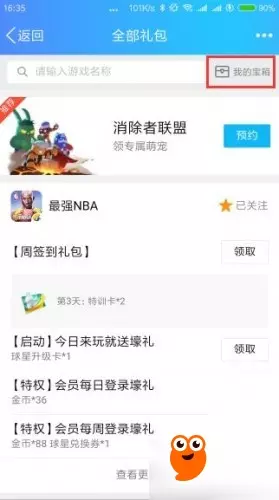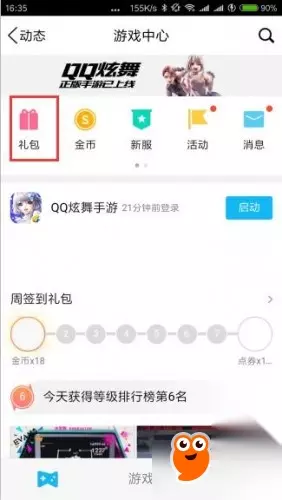 第二步,打开“游戏中心-礼包”界面;