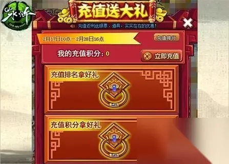 腾讯页游《QQ水浒》重磅打造限时回馈福利,连续13天筹备大量豪礼疯狂派送!充值活动馈赠定制金将,消费活动派送6级合成石;真·董澄武将重磅首发,红·李忠概率招募;月银票商城和月末返利礼包联手降价,更有多达数十个活动助阵,赶紧来抱走你的福利吧。 充值消费连环礼 狂送Q币礼包 《QQ水浒》重磅回馈福利第一招,参加活动即享连环好礼。2月17日10点至2月28日16点“充值送大礼”活动期间,玩家充值任意额度就能获取对应的积分,积分达到指定额度可以领取专属Q币道具礼包,本期更是新增价值2800Q币的1W积分礼包;积分排名在全服前列的玩家,还能获得定制金将,天王套装自选包,满属性二阶金色兵魄自选包等众多好礼! 与此同时,玩家在游戏中消费还能获得抽奖机会!2月17日0点至2月28日24点“消费抽奖”活动期间,玩家每消耗1银票获得1积分,每消耗1QB获得10积分,获得的积分将可以拿来抽奖,奖品包括金色兵魄自选碎片、金色腰带包、6级合成石等众多豪礼。