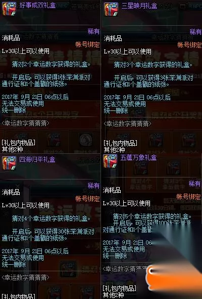 DNF幸运数字猜猜猜 至于奖励,一组猜对2个数字以上的根据猜对的数量可以获得不同的奖励,具体的奖励内容如下图。