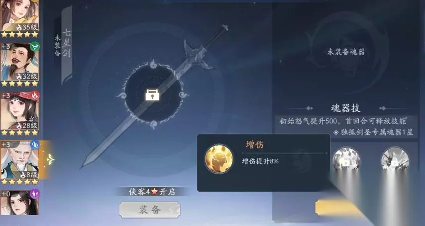 角色按照初始星级有1~5个级别,1星的无法升星,二星及以上的才可以升星,不过基本上2星初始侠客都拿来分解了,3星的也是基本用作材料,只有“雷元戈”作为buff启动器除外。