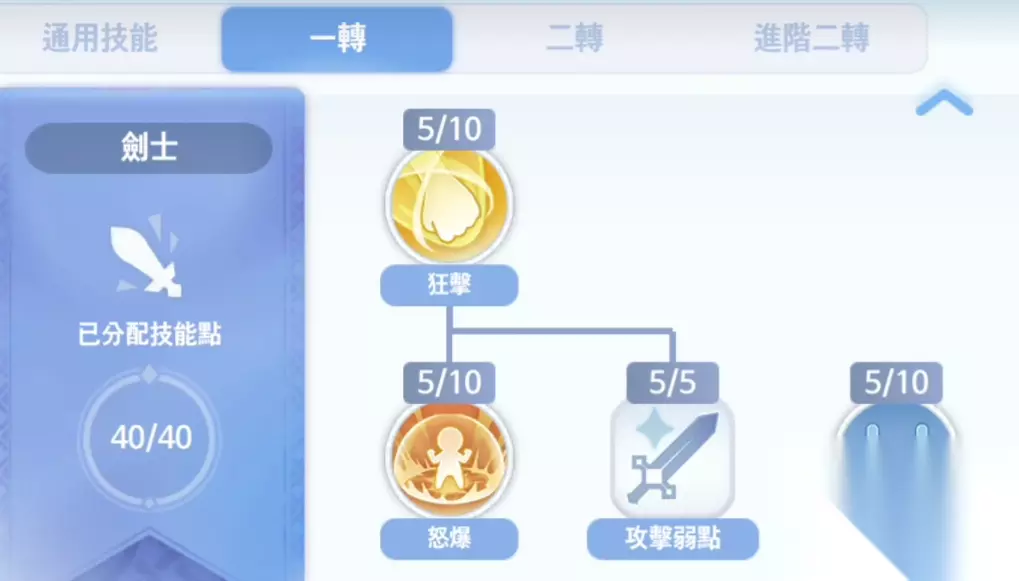 接下来说一下加点,剑士阶段首先在不洗点的情况下,狂级点到5级就够用了,然后需要点5级暴怒。之后的攻击弱点需要全部点满,快速恢复点满,挑衅可以点满,也可以点5,之后霸体需要点满。
