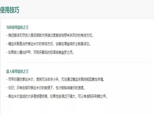 蛮子是一个相对发达的英雄。在没有装备的情况下,只有平A没有很多野手高效,只有W减速蛮子追击能力不突出。优势更多在于6级大招后野区出色的单挑能力。所以如果没有机会早点开始,还是以刷为主。如果不死,可以帮助队友过塔或者入侵野区扩大经济差距。