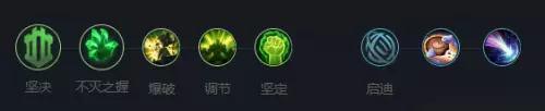 4、符文推荐:【坚决+不灭之星+爆破+调节+坚定+启迪+饼干配送+行进速率】