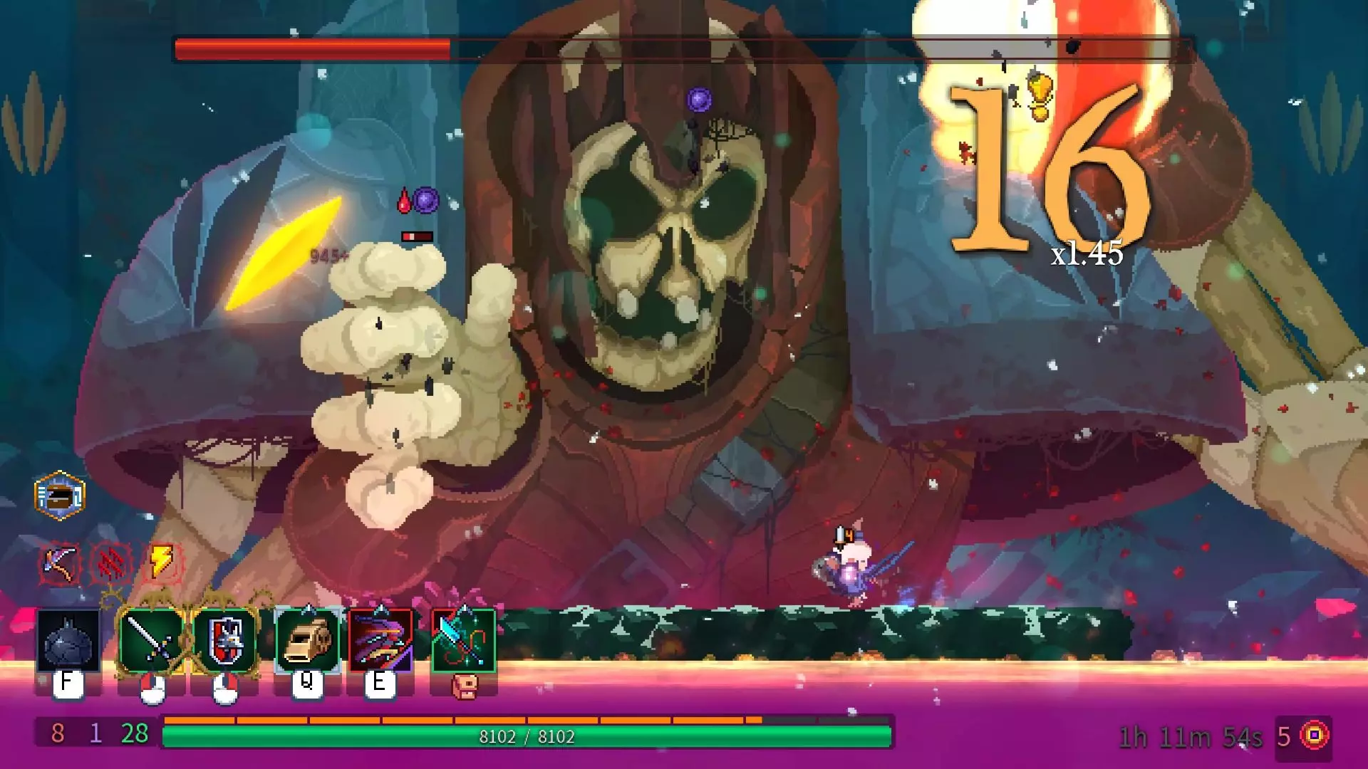 这是玩家在《重生细胞》游戏第七天的挑战内容,完成了无伤一命速通巨人BOSS的操作,展示了对战巨人BOSS的精彩战斗过程。