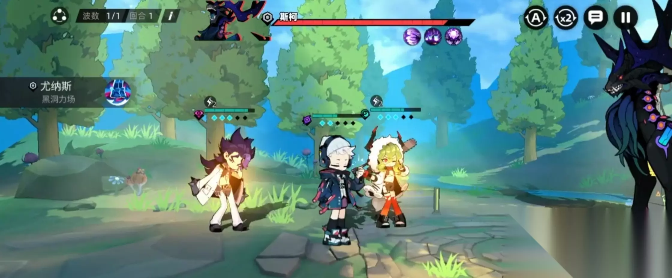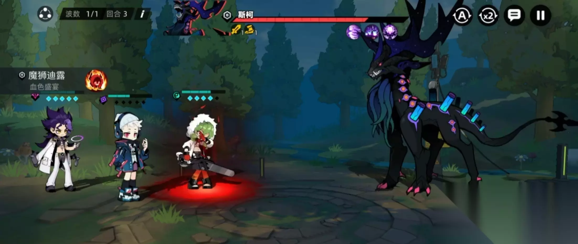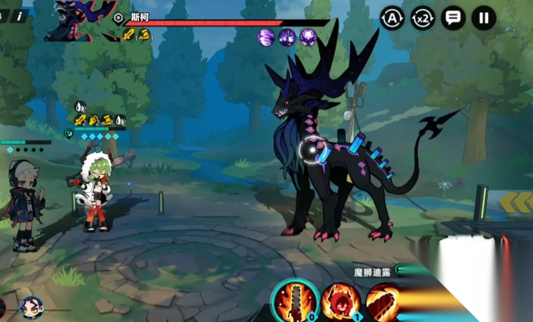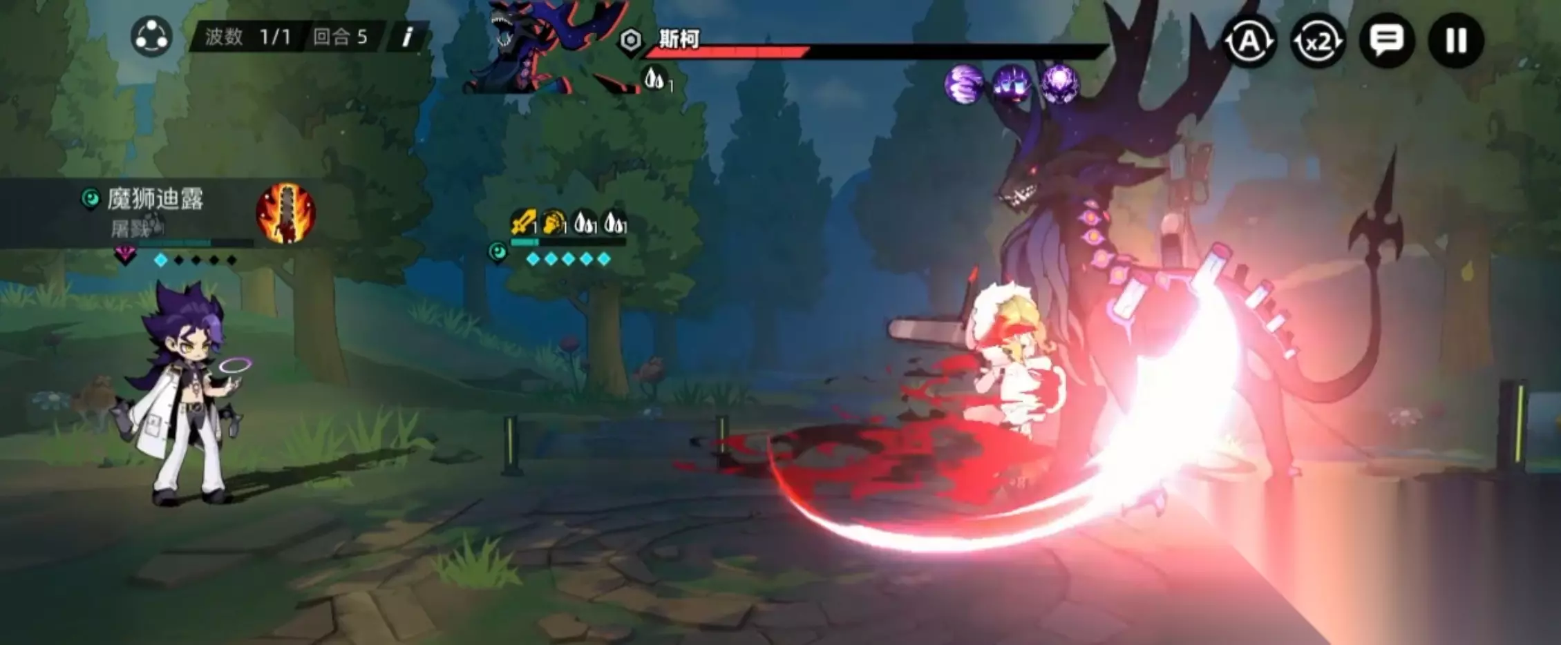 二技能是【血色盛宴】,这一技能是单纯的增益技能,可以给魔狮迪露带来多重增益效果,让魔狮迪露可以获得攻击上升、速度上升的buff,都是持续两回合时间,再给敌方加一个两回合流血状态,让敌方持续受到伤害。不得不说,这个技能真的狠“险恶”,但是非常符合魔狮迪露有点疯狂的个性,她可以在增强自己的同时,不断地去瓦解敌方的生命,从而致对方于死地。