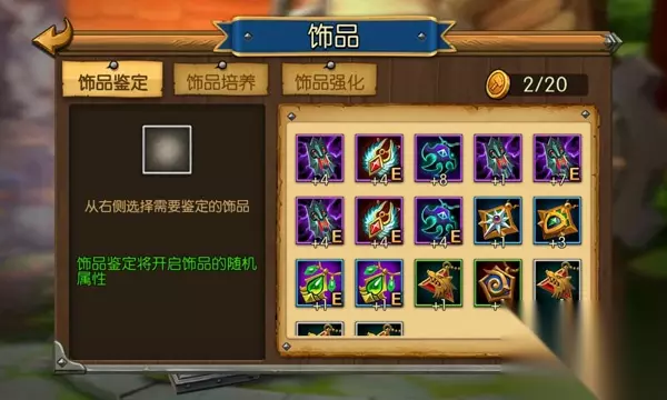 图5:《召唤师联盟》技能界面 饰品极大提升战斗力,刷图爬塔PVP必备 饰品,也是能够提升英雄战斗力的重要系统之一,玩家需要在铁匠处进行饰品隐藏属性的鉴定、属性培养、强化等。那么如何获得饰品呢?首先,开服充值会赠送圣泉项链,得到后直接给前排英雄使用,对前期爬塔推图有很大作用。如果不想充值,那么还可以通过天梯排名奖励、每天讨伐BOSS、无尽塔和金币招募得到。经过一段时间,对紫色饰品的需求增大,可以通过无尽塔商店、实时竞技商店、铁匠铺熔炼、天梯前五名奖励、商店概率售卖等方式得到。同时,对于着急的玩家,打副本如果出猫商人后可以直接花钻石购买,当然,这需要积攒钻石哦,虽然花费高,但是性价比也最高。