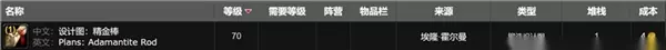 制作所需材料: 精金锭:需要 10个精金锭 来制作精金棒。