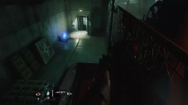step7.外出管道落到平台上,前方闸门就会开启。 在叉车和箱子旁会出现守卫,向他们投掷炸雷即可解决问题。 跳上管道就可以去到第一个控制室顶部,从顶部的天窗内进然后打开节流阀的门,那么BT就可以自行去到另一个区域。