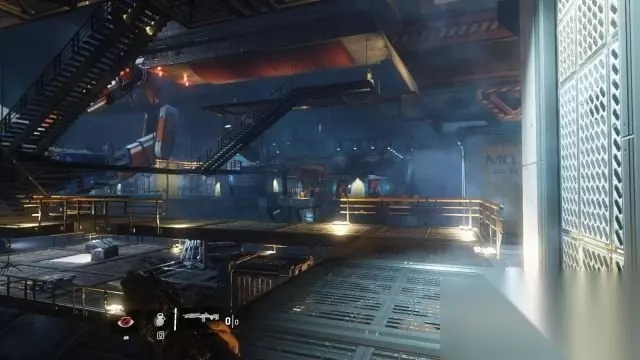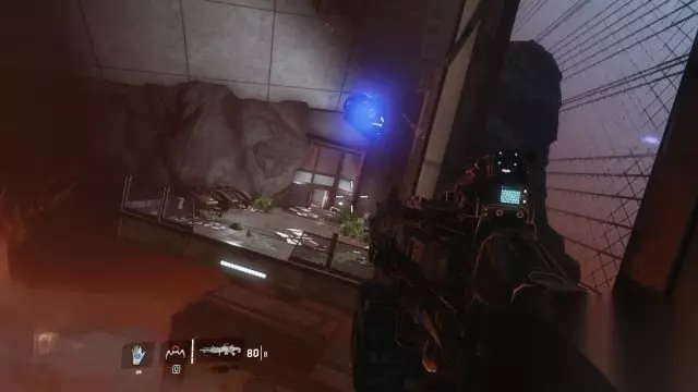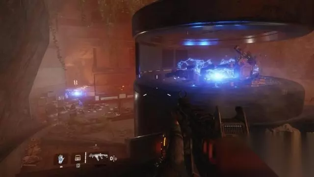 step4.按鼠标滑轮可以切换过去和现在,过去会出现IMC步兵,现在会出现猎犬。 不同时空的敌人不会在同期出现,在场景中会出现蓝色光斑表示不同时空的敌人所在位置。 铁驭头盔会出现在不同时空当中,因此需要注意。 进入到实验室02当中,在现在时间可以进入通风槽内,然后回到过去穿过生物研究所的门,操控走廊尽头的控制台就可以进入到长廊中。