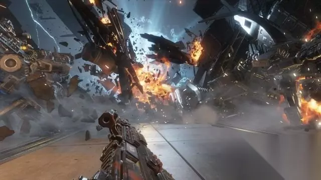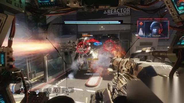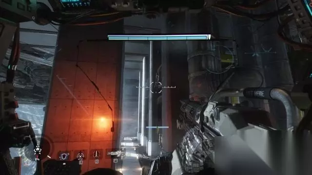 step4.回到BT上继续前进,来到机库,在这里要面对大批步兵以及三台敌方泰坦,借助粒子墙以及场景作为掩体对付敌人。 走到右侧的闸门前,当闸门打开时,使用大招可以快速摧毁从闸门外出的另外三台泰坦。