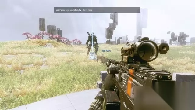 step7.接着可以与Lastimosa队长对话继续进行练习(如果没有拿到头盔的,还可以继续拿)。 如果是想进入到下一个练习的话告诉Lastimosa队长已经准备好。 最后一个练习就是召唤泰坦,瞄准IMC的一台泰坦,然后按V键就可以让泰坦砸毁敌人的泰坦。