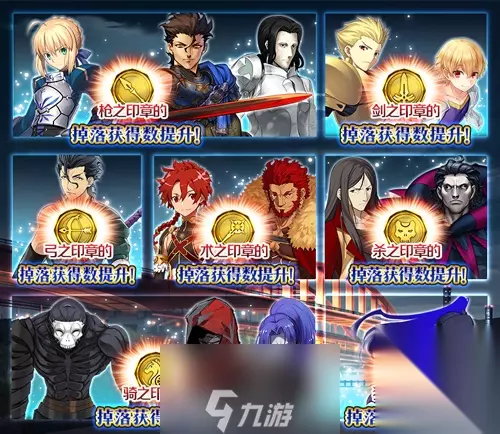 下面来讲讲本次活动的加成,这次加成有【加成从者】和【加成礼装】两部分。 卡池礼装增加装备从者克制职阶的印章掉落,活动从者也是增加克制职阶的印章掉落,活动礼装则增加全职阶印章掉落。