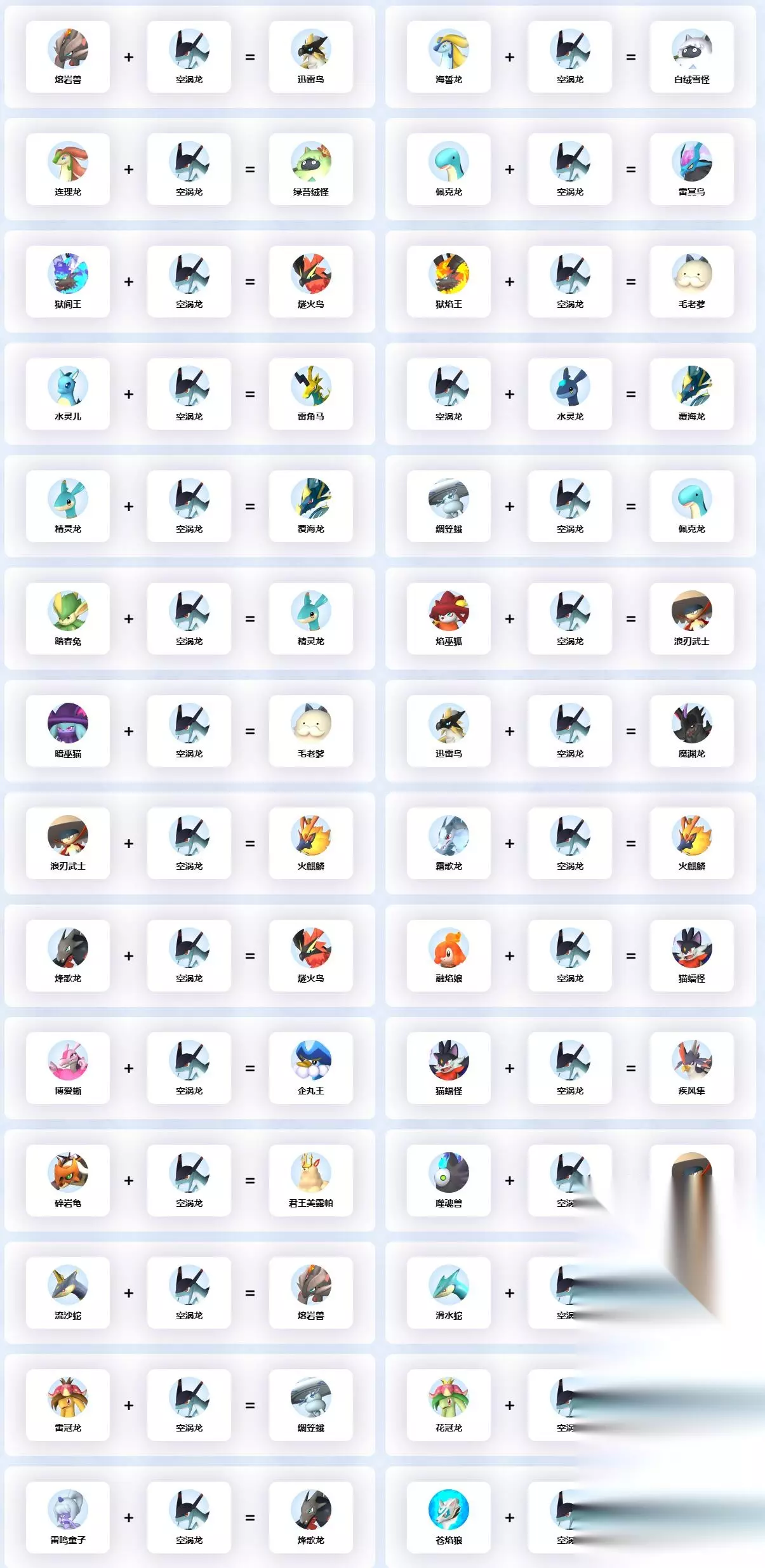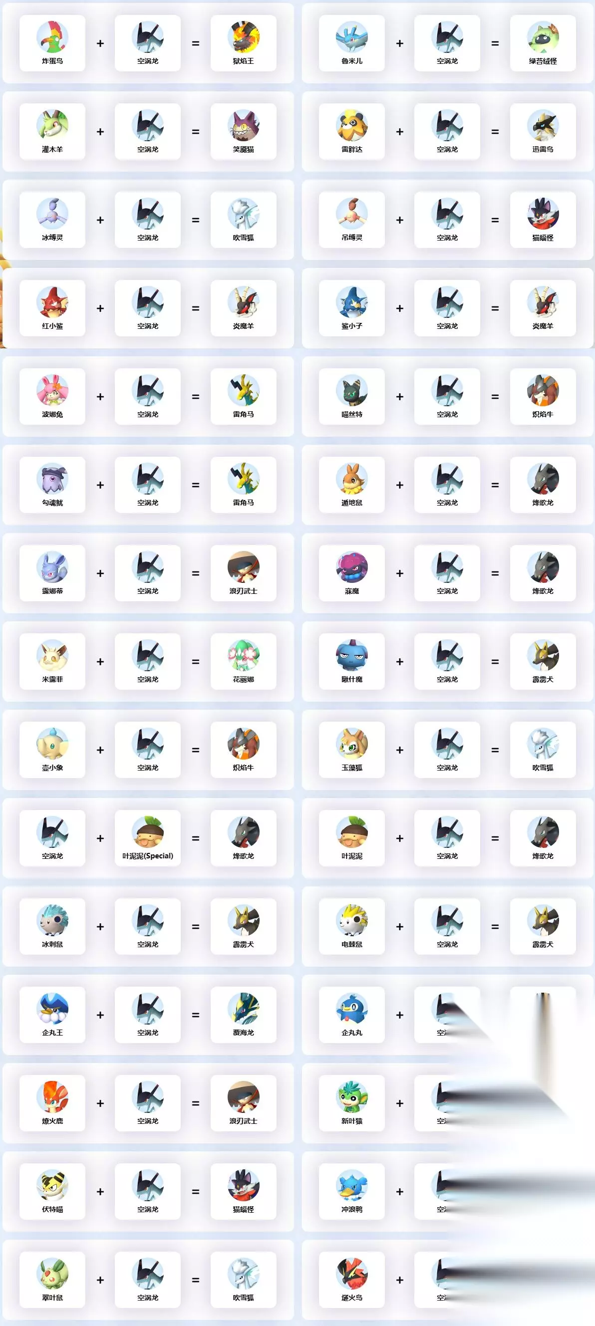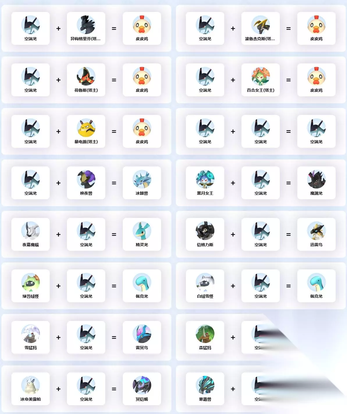空涡龙作为一只非常稀有的宝可梦,很多的玩家都非常的好奇要怎么进行配种,小编今天就为大家带来了空涡龙的详细的配种公式,玩家可以在这篇文章中了解到空涡龙的各种配种公式,详细的内容可以在这篇空涡龙配种公式大全一览之中进行了解,让我们一起来看看吧。
