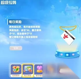 二、工资领取方式 超拉专属工资:金豆*30,薰衣草种子*15,郁金香种子*15 领取步骤: 1. 先点击自己左上角的超级拉姆,跳转到超拉界面。 2. 在超级拉姆界面的下方选项栏中点入每日奖励,点进去就可以获取超拉工资了。 三、超拉特权 1. 超拉有专属特殊装扮领取; 2. 超拉有专属特权以及专属道具; 3. 超拉每天都能收到专属工资。 上面的内容基本包含了摩尔们所关心的关于超拉的全部内容。建议收藏起来反复观看哦!