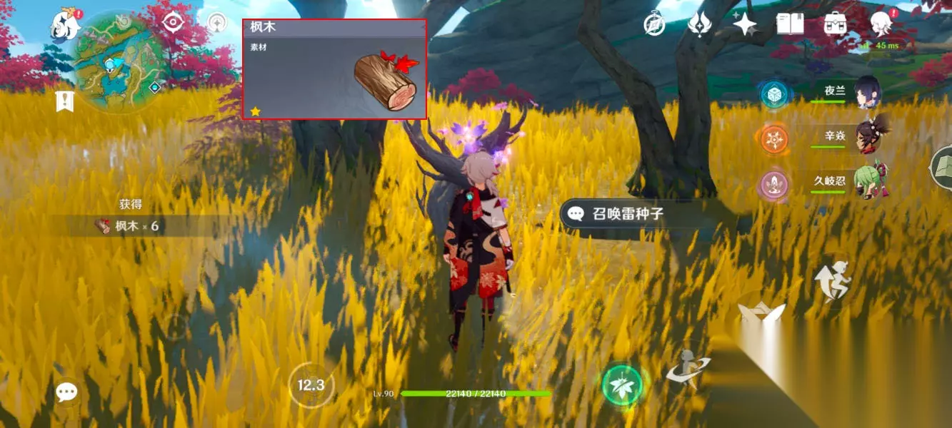 枫木地点:绯木村七天神像后方。只能一次砍到6颗,我全都跑过了,这里最近。