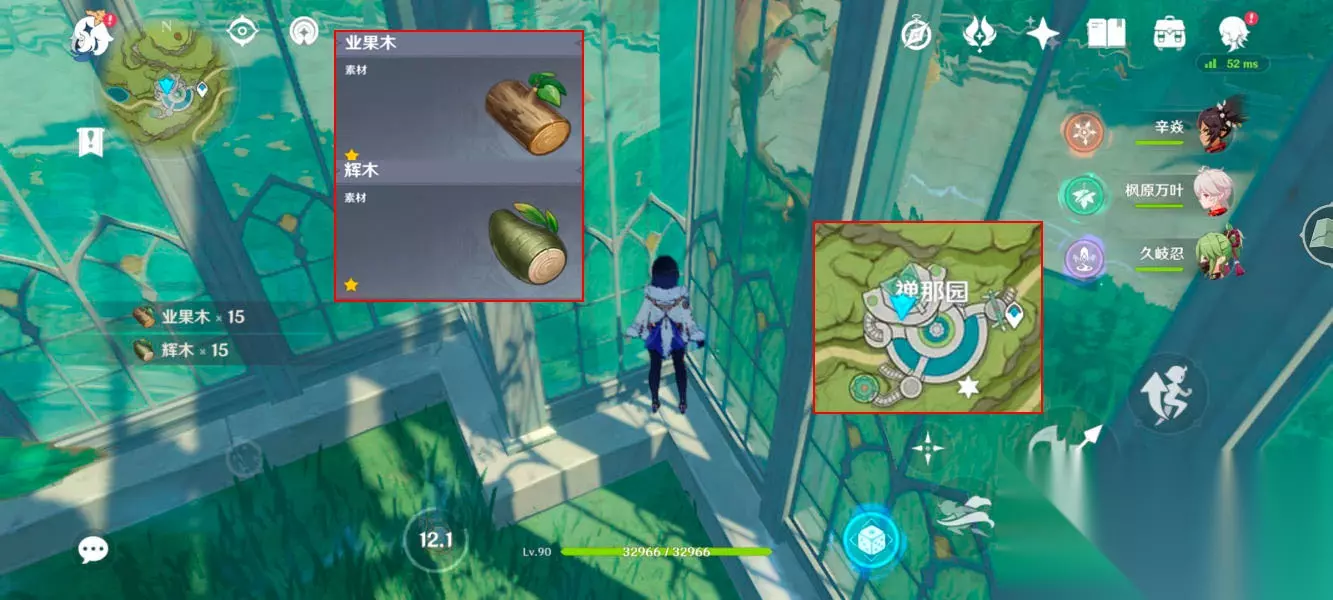 业果木和辉木地点:禅那园二楼进门左转,再左转。可以砍15颗业果木和15颗辉木。