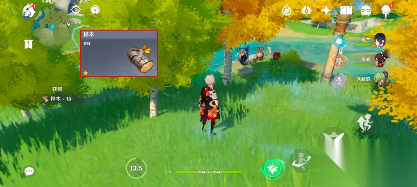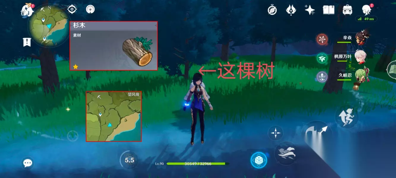 松木地点:蒙德城广场下方,一次可以砍24个,仅推荐这一个位置。