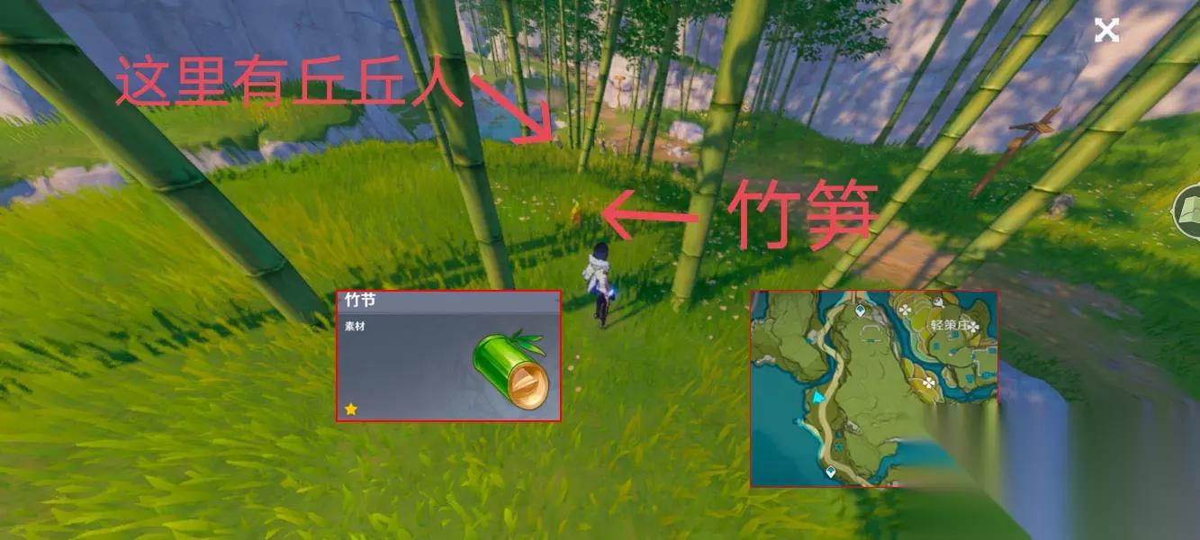 竹节地点:轻策庄竹林。这里一次可以砍30颗竹子。