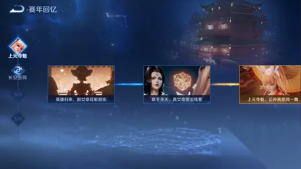 (二)新系统:赛年回忆 为了帮助玩家们更方便地回顾赛年故事,我们上线了赛年回忆系统。玩家通过这个系统可以查看从S22赛季《上元夺魁》开始的赛年故事中的精彩内容。同时,本赛季新解锁的故事,也会在这个系统中同步开启。