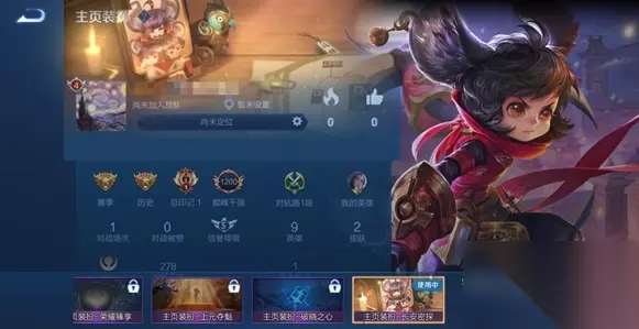 赛季历练历练值达2000获取,仅《不夜长安》系列皮肤可用 3、主页装扮——长安密探