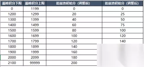 赛季结算时达到全国前一万名的生涯称号奖励替换为个人主页装扮奖励 (六)巅峰能量参数调整 1.继承参数调整