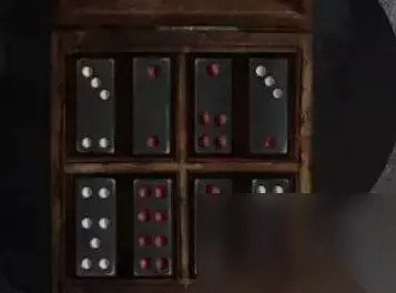 1、根据屋子中的风景画拼出的暗门上瓷器的顺序:屋-桥-船头-船身+屋门。 2、根据巷子中的石敢当用手机可以看到眼中的骨牌的顺序得到: