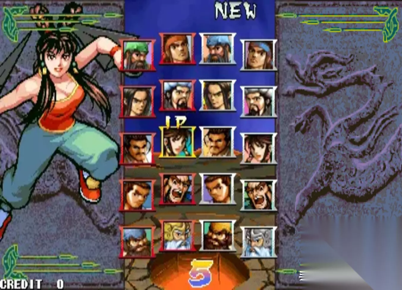 三国战纪:乱世枭雄 《乱世枭雄》的选人界面有点类似于《侍魂》的修罗、罗刹系统,即每个角色都有一个自己的“New”角色,这两个角色除了服装颜色稍有不同之外,战斗和连招的方式也完全不同,所以可选人物达到了20名之多。