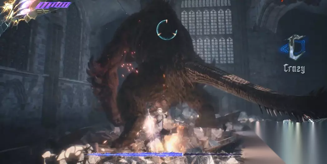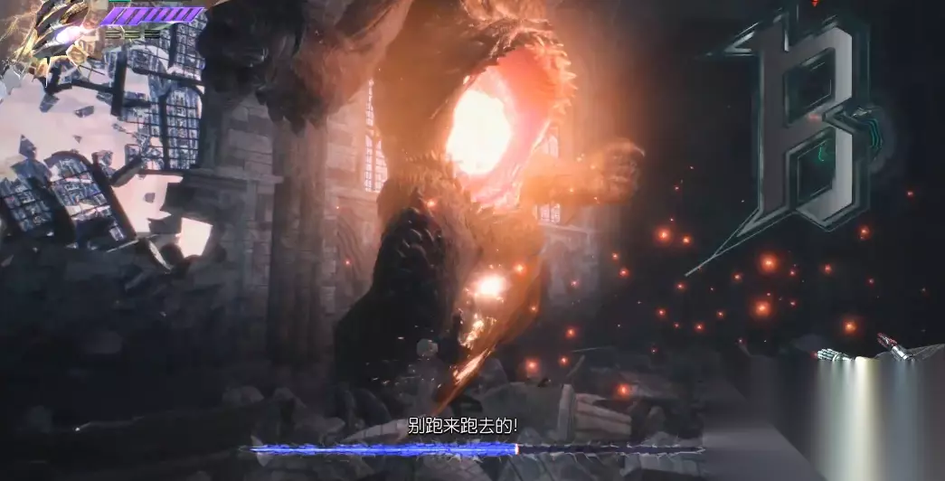 当Boss血量降至三分之一时将进入狂暴状态,此时应优先保持生存,继续观察其攻击模式。推荐使用尼禄的蓄力机械臂或但丁的火箭筒进行爆发输出,V的使魔在此阶段极具战略价值——格里芬的远程雷电与暗影的突袭可安全消耗血量,玩家只需专注走位即可。