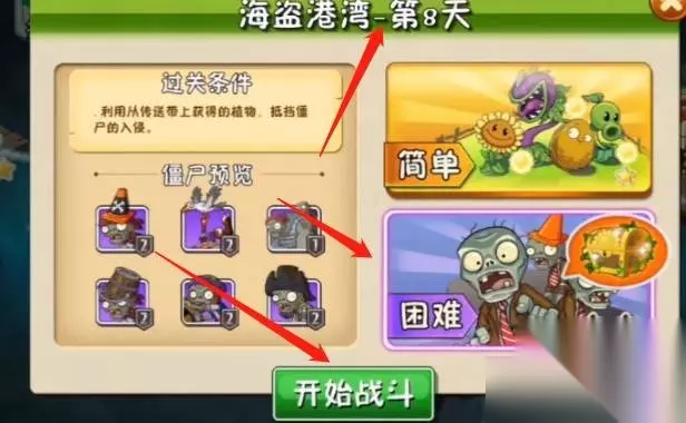 植物大战僵尸2海盗8困难打法 先进入到游戏中,需要先来到海盗第8天困难模式当中就可以。