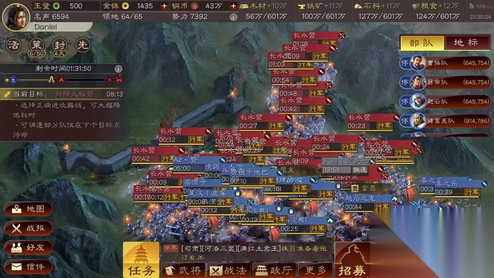 另外要塞还能提供移速加成,在要塞中集结部队的速度会提升一倍,在调动后要塞就能成为部队的基地,部队在外面完成战斗后,还会主动回到要塞当中来。要塞作为兵营的好处非常多,可以将主城中的不同类型的兵种,比如骑兵、步兵和弓兵都分散到要塞当中,在对战其中一位敌人时候,需要另外兵种进行增员,或是增加另外一个兵种的比例,都可以直接用到要塞中储存的士兵。当要塞发展到一定程度,还可以直接在要塞中征兵,这就省去了需要再主城中调遣兵力的时间,而且要塞在不断扩大过程中,可以直接当分城发展,在领土的边界,只要有敌人想侵占领土,要塞就能直接派出军队攻打。