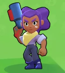 shelly,中文名暂译雪莉好了,这是一个女枪,基础属性生命800,普攻会射出5颗子弹,大招能射出9颗子弹,操作相对来说比较简单,是小编使用最舒服的一个英雄,前期使用这个英雄可以快速赚取金币开箱兑换英雄,推荐各位小白玩家使用。