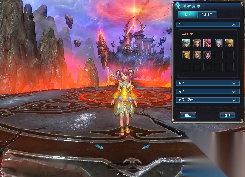 2、选完服务器进入后,会看到所有6个职业的模型,选中要创建的职业,点击【下一步】按钮,进入新建角色操作界面。 3、在角色创建界面上,右边选择框有脸型、发型、特征三项基本属性可供修改,可根据自己的喜欢选择。 4、中间是各职业人物的展示。选完职业、发型脸型、输入完名称后,点击“创建”进入下一步。