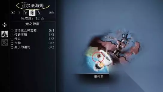 二、第二只渡鸦位置 1.来到“亚尔法海姆-光之神庙”下边的位置。