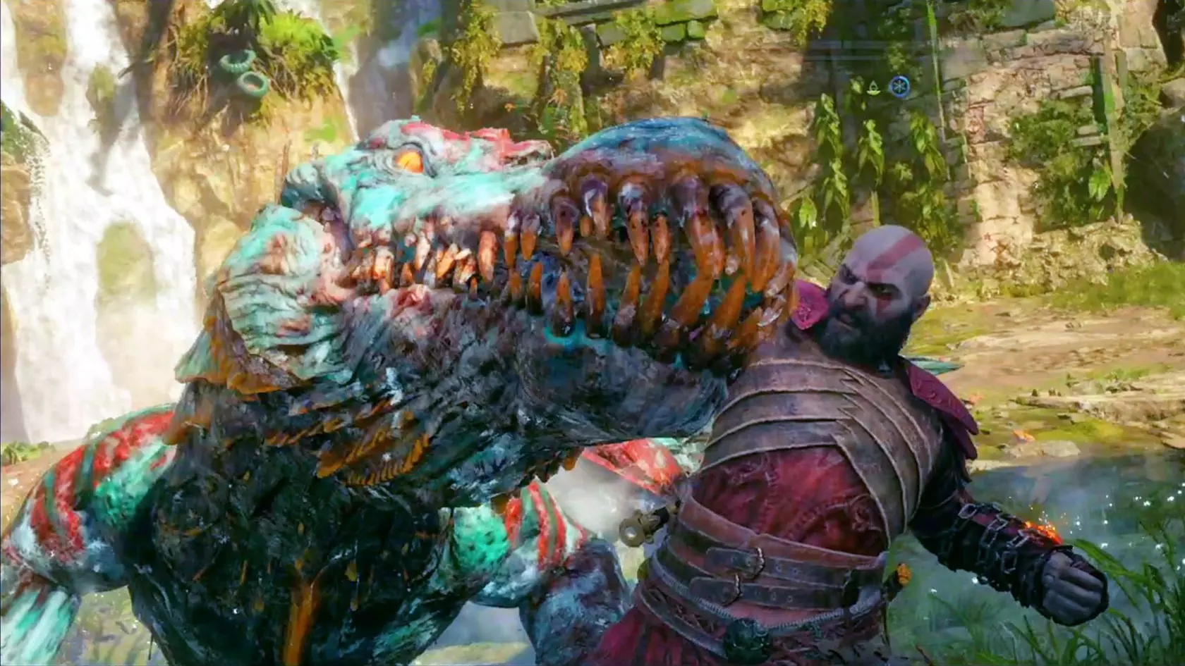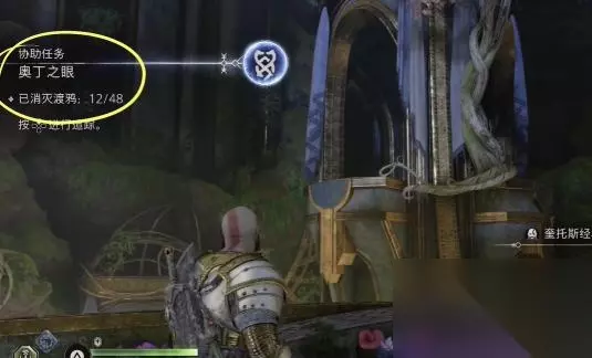 8.使用斧头攻击左侧石柱上的反射水晶,经过二次反射可以干掉渡鸦。